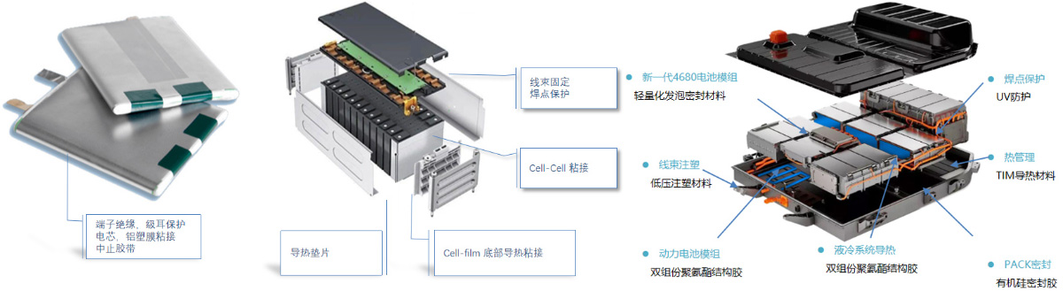 The company's series of products, represented by new energy polyurethane structural adhesive, adopt innovative synthesis technology to achieve a new technological trend of lightweight, high energy density, and high reliability performance for power batteries, and provide key packaging materials for customers.
