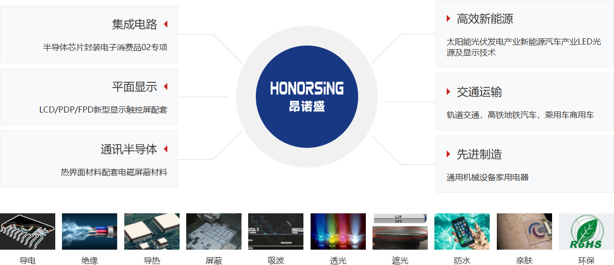 Applied to electronic product terminals such as mobile phones, headphones, laptops, etc., it achieves functions such as bonding, optical transparency, side coating shading, heat dissipation, and filling protection.