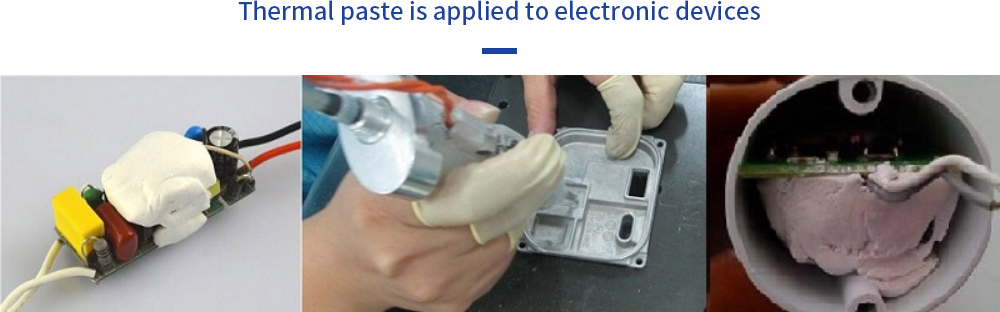 Squeezing thermal conductive paste has a certain viscosity, can be extruded, has good thixotropy, does not flow away, and has good adhesion with the contact surface. It can be used for automatic dispensing;
