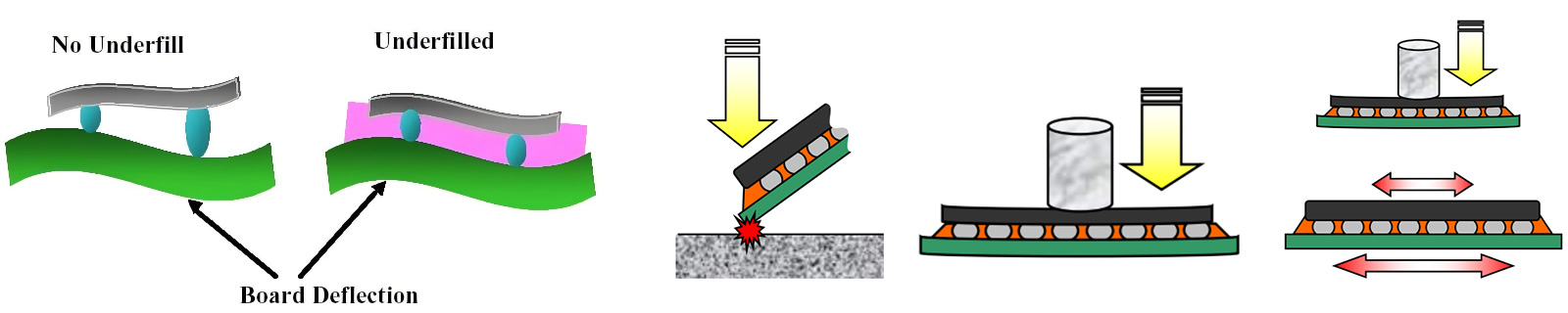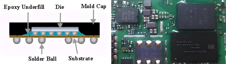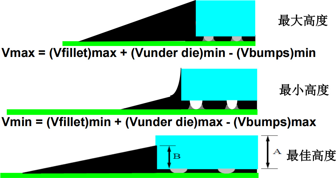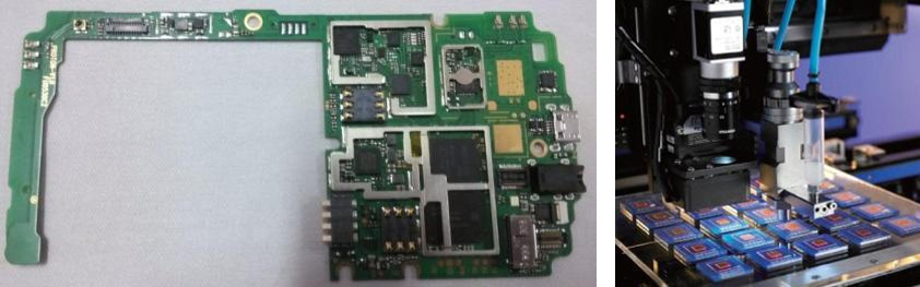 BGA/CSP: 用于PCBA中BGA和CSP器件底部填充,以提高PCBA的耐温度冲击和跌落能力.要求快速流动、返修性和可靠性.