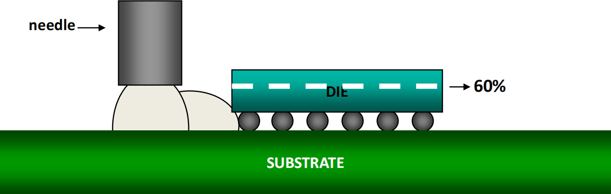 I型点胶: 沿着芯片的一边点胶,适用于小芯片.